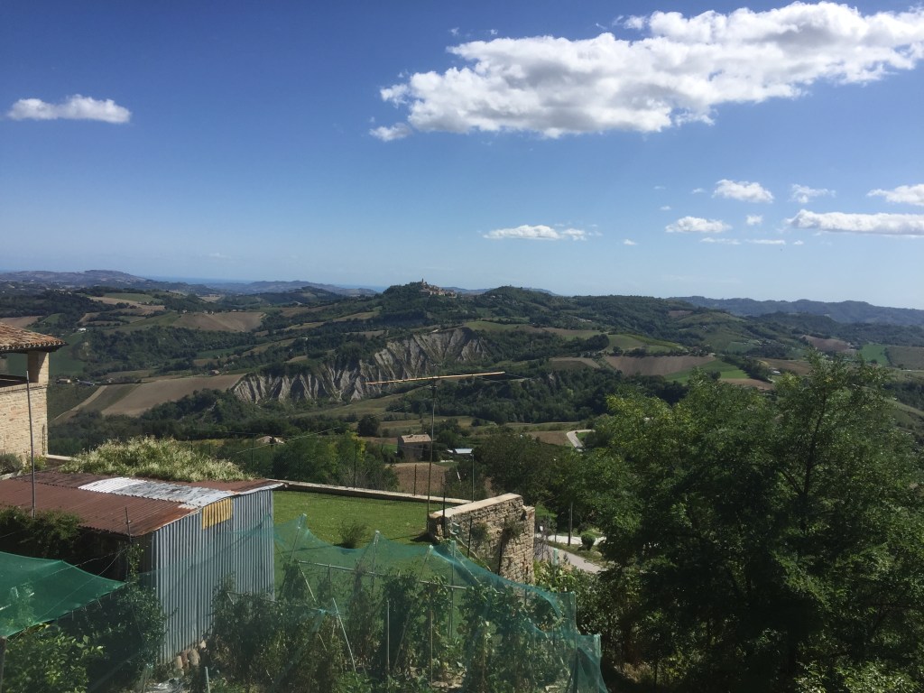 昨日は夜だったので、足下以外はあまりよくわからない感じだったのですが、一夜明けた快晴のサンタヴィットリアのハイジ感みなぎる山の絶景!