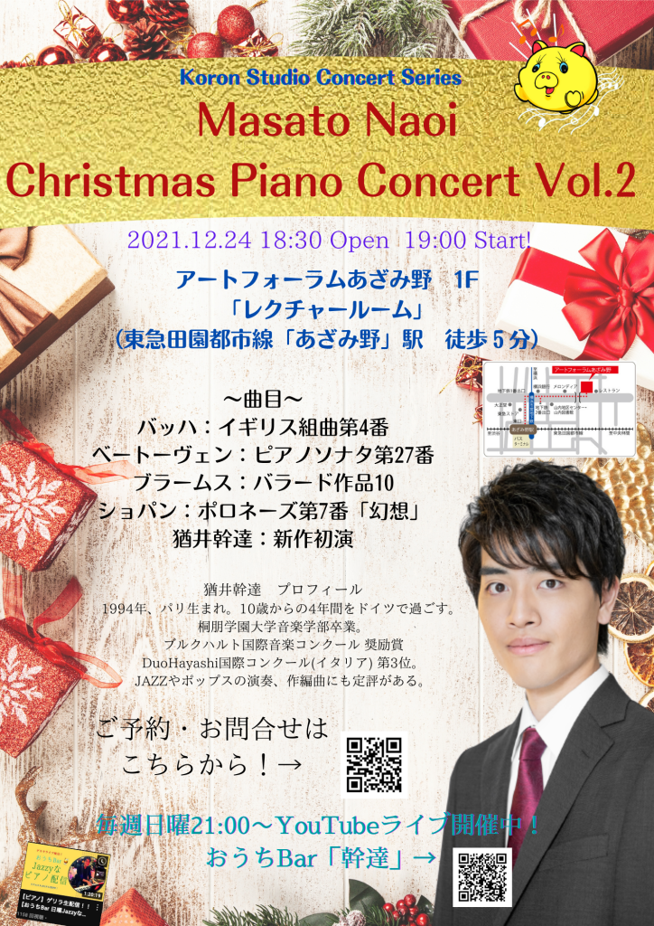 15日は権田ソロライブ。あの実力派ピアニストがコロンスタジオに再登場。またしてもコンサートで深いピアノの世界へと誘います。絶対見ましょうね!