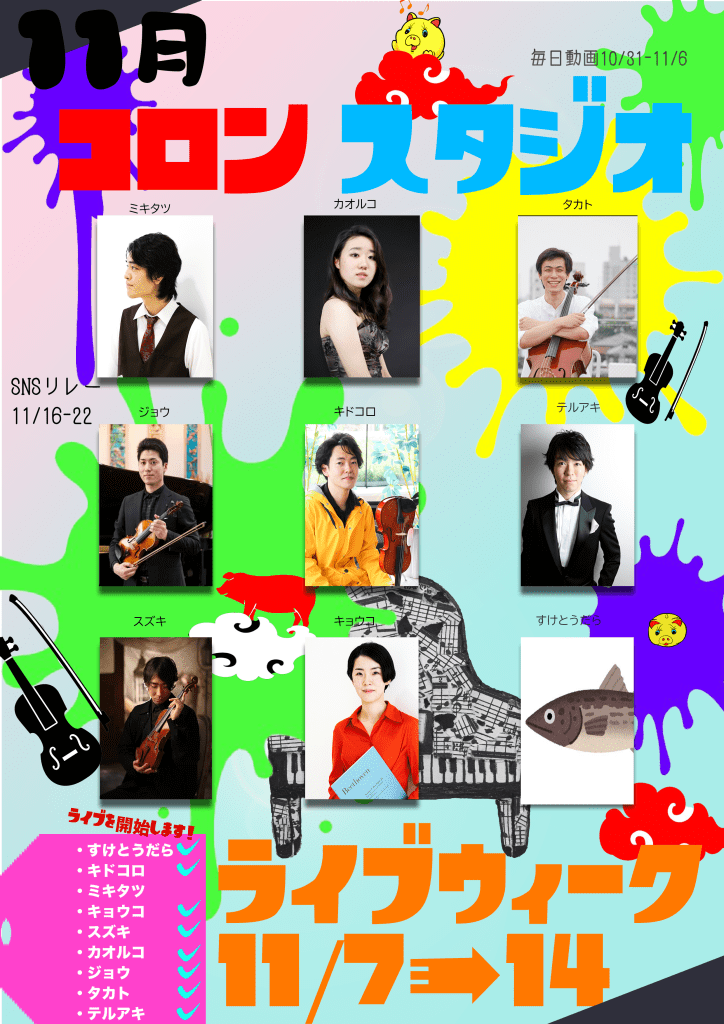 11月のコロンスタジオ付きの初めの毎日投稿週とライブweek!